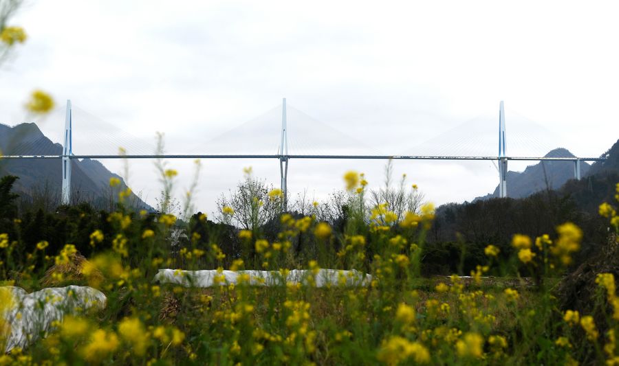 Located in Bouyei-Miao Autonomous Prefecture of Qiannan, the bridge, a colossal cable-supported viaduct that spans 2,135 meters across a canyon, will serve as a major connection on the Pingtang-Luodian Expressway.