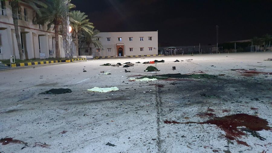 Photo taken on Jan. 4, 2020 shows the military academy hit by an airstrike in Tripoli, Libya. An airstrike hit a military academy in the Libyan capital Tripoli late on Saturday, killing 28 students and injuring 18 others. (Photo by Hamza Turkia/Xinhua)
