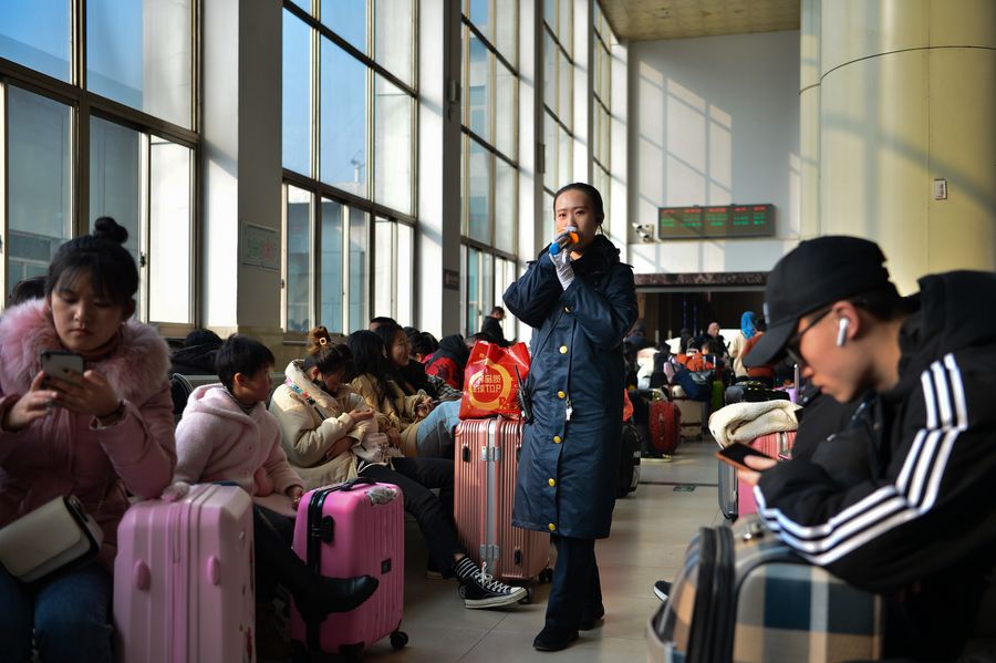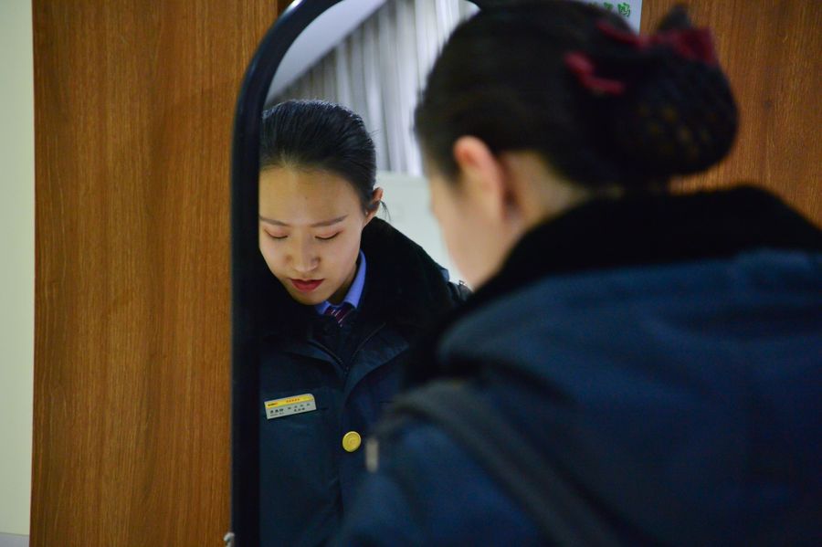 As the Spring Festival travel rush is approaching, attendants like Yang Chenxue are getting busier. Their duties include checking passengers in, inspecting the waiting room and helping passengers in need.