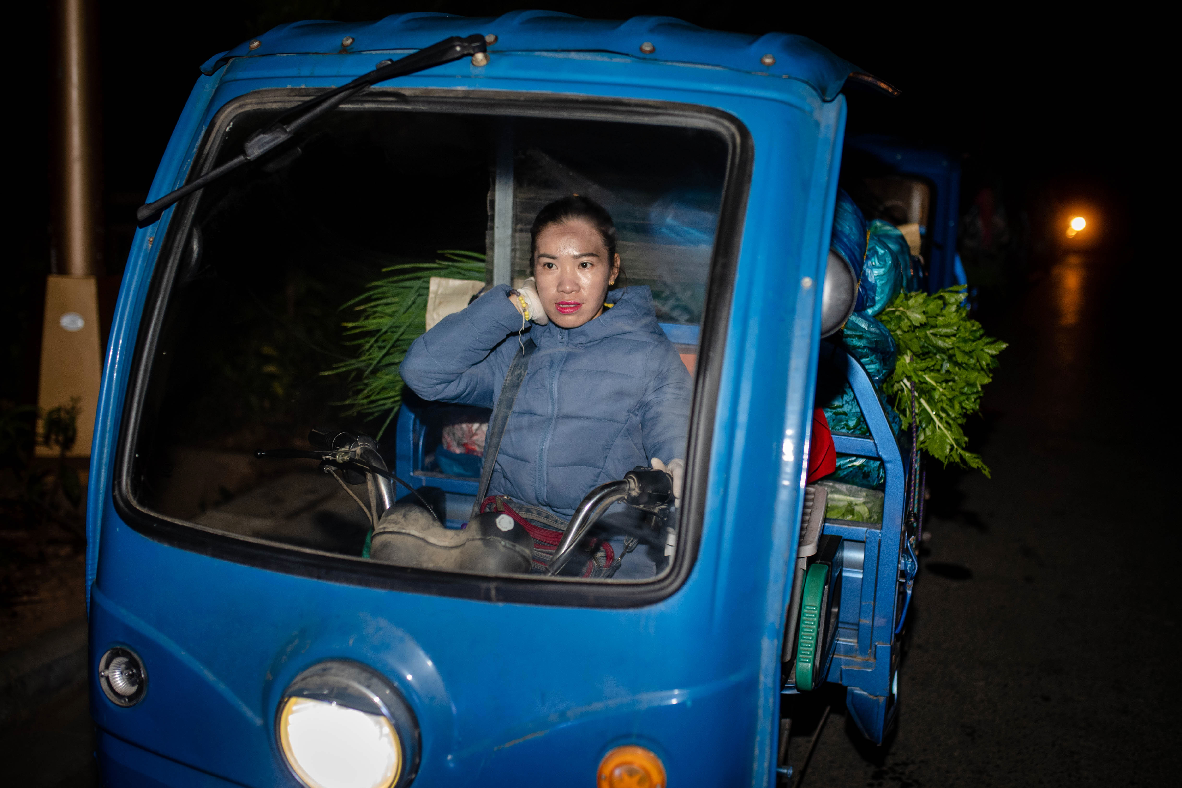 Chinese farmer Yukan who sells vegetables at a market in Myanmar, queues to leave a border crossing in Menghai county, southwest China's Yunnan Province, Jan. 11, 2020. (Xinhua/Hu Chao)