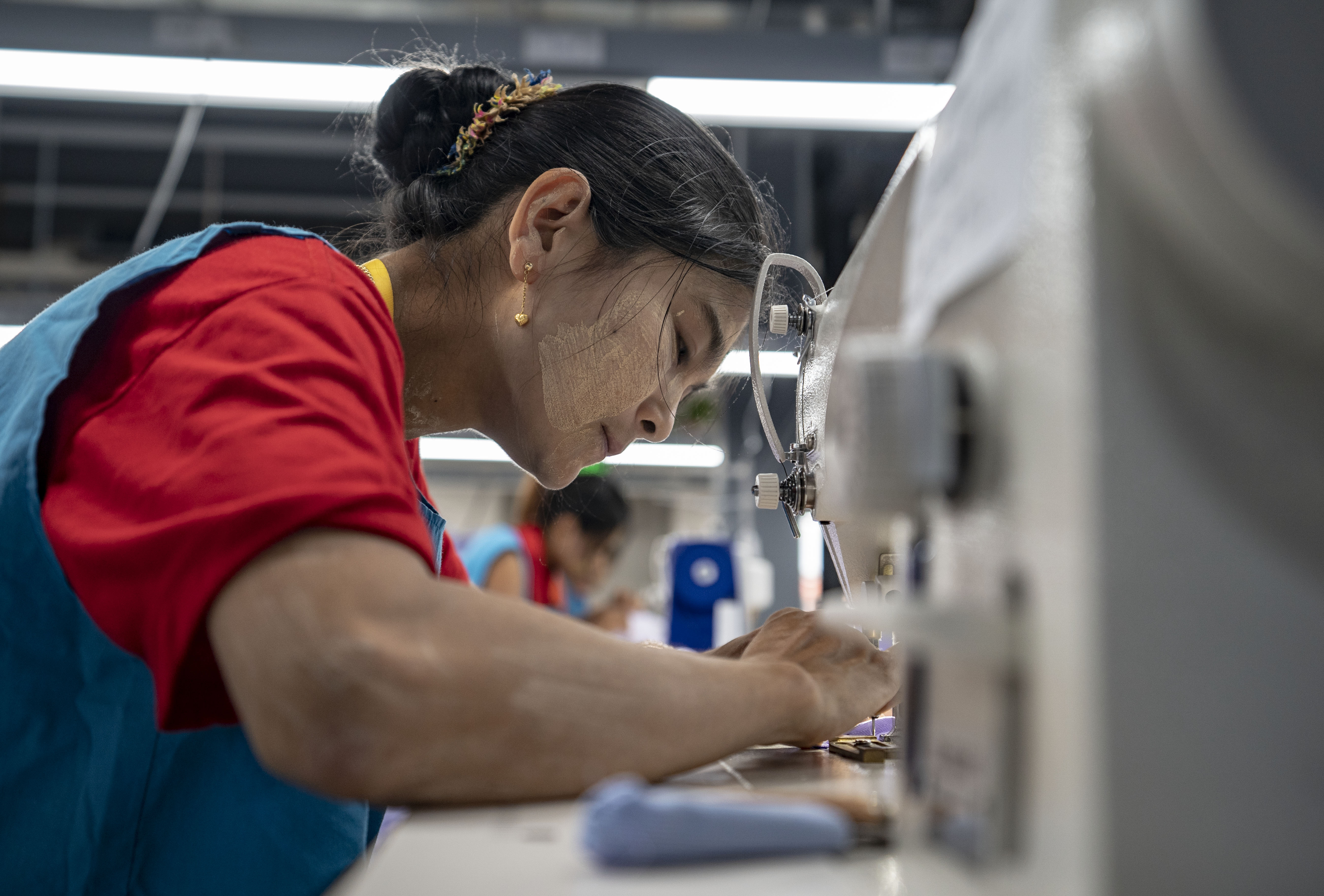 An employee from Myanmar works at a clothing company in China (Yunnan) Pilot Free Trade Zone (FTZ) Dehong Area in Dehong, southwest China's Yunnan Province, Nov. 4, 2019. (Xinhua/Jiang Wenyao)