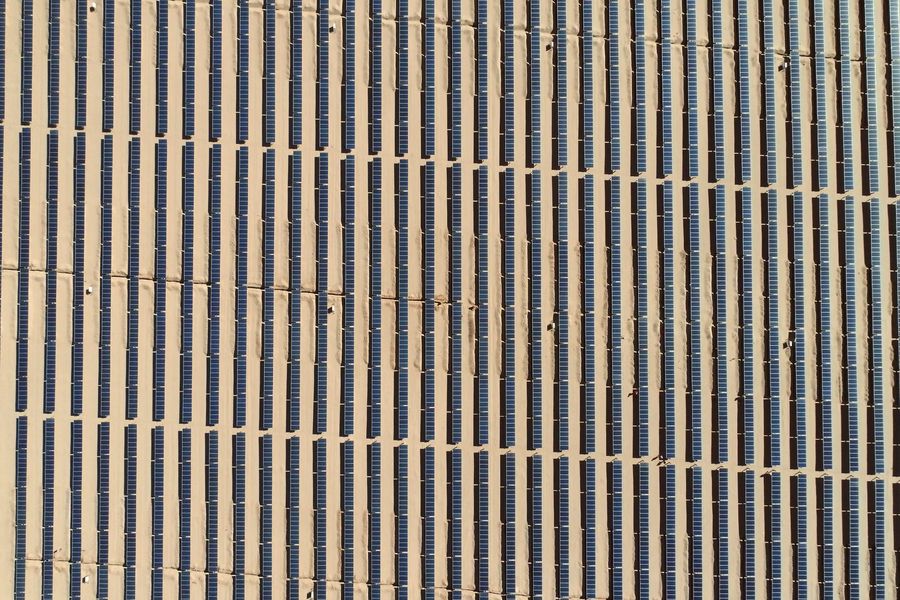 Aerial photo taken on Sept. 18, 2019 shows a view of a photovoltaic plant with Chinese technology and equipment in the town of Cafayate, Salta Province, Argentina. (Xinhua/Martin Zabala)