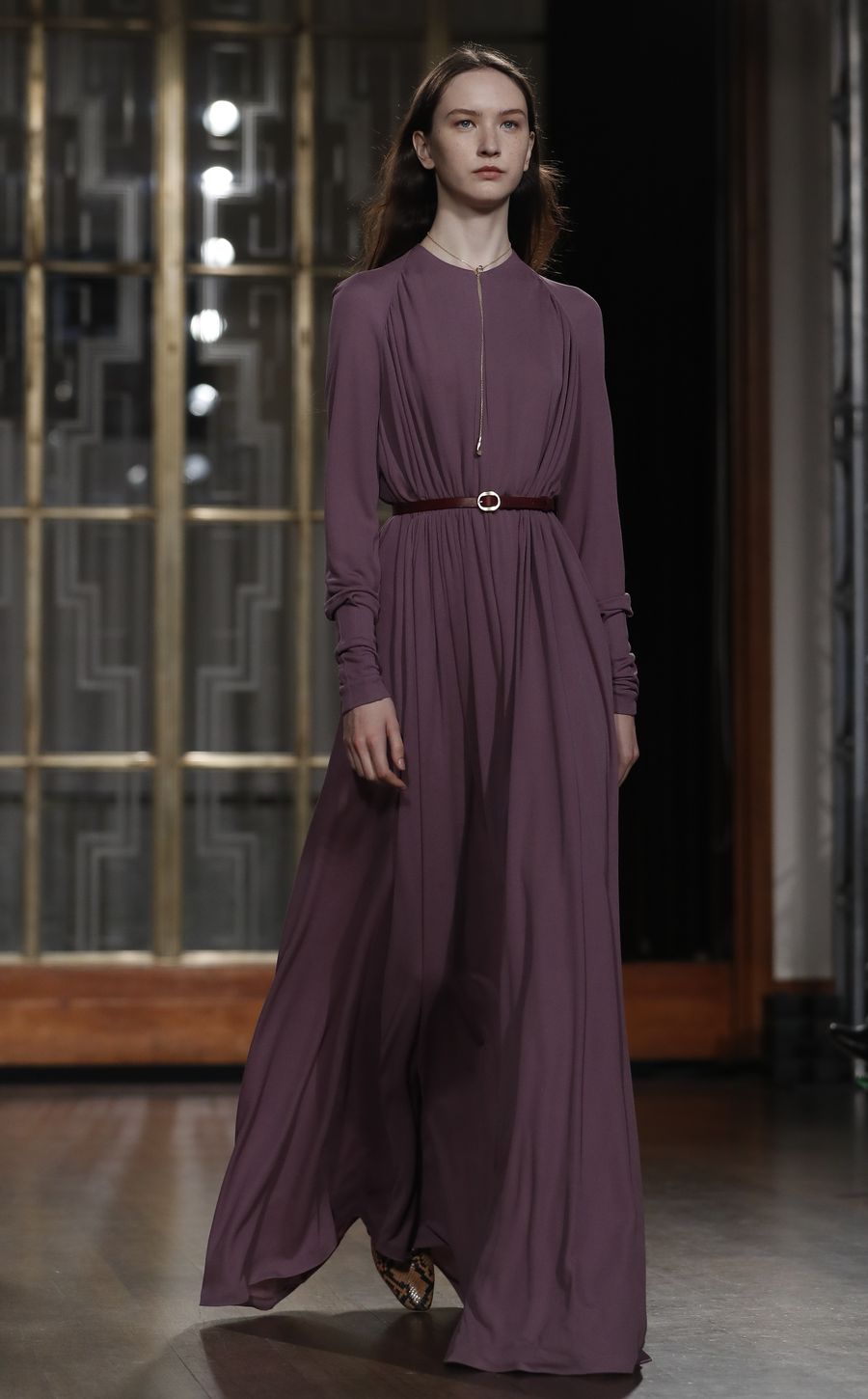 A model walks the runway at Petar Petrov catwalk show during the London Fashion Week at the Royal Institute of British Architects in London, Britain. (Xinhua/Han Yan)