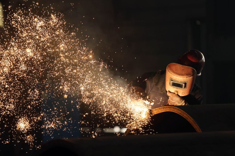 A worker works at a factory of Northern Heavy Industry Group Co., Ltd. in Shenyang, northeast China's Liaoning Province, Feb. 10, 2020. (Xinhua/Yang Qing)