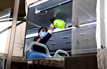 Huang Fei steers the bus in Zhengzhou, central China's Henan Province, Feb. 24, 2020. Huang Fei, a bus driver born in 1986, conducts a variety of measures to safely facilitate the travel of people during the epidemic control period. (Xinhua/Li An)