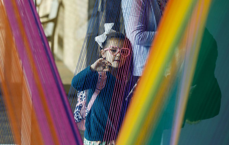 A girl looks at an art display during the Orchid Show at the Chicago Botanic Garden in Glencoe of Illinois, the United States, on Feb. 27, 2020. (Photo by Joel Lerner/Xinhua)
