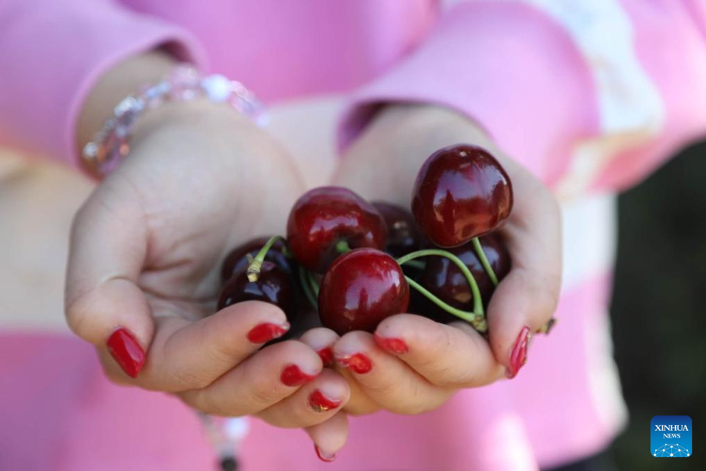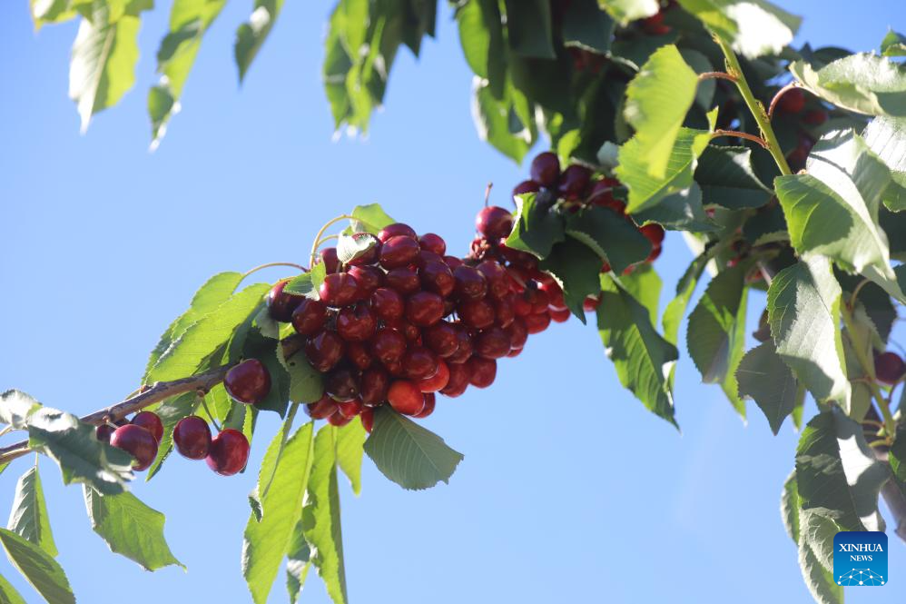 This photo taken on Nov. 10, 2025 shows cherries ready for harvest seen at a production zone of Curico, Chile. (Photo by Lu Ruixiang/Xinhua)