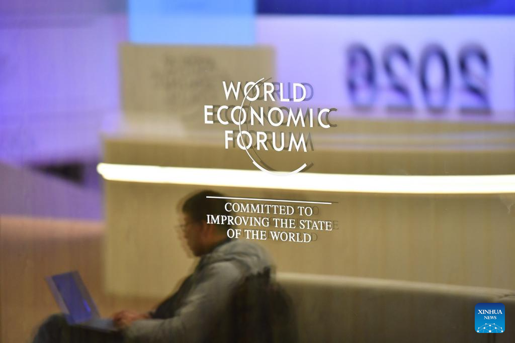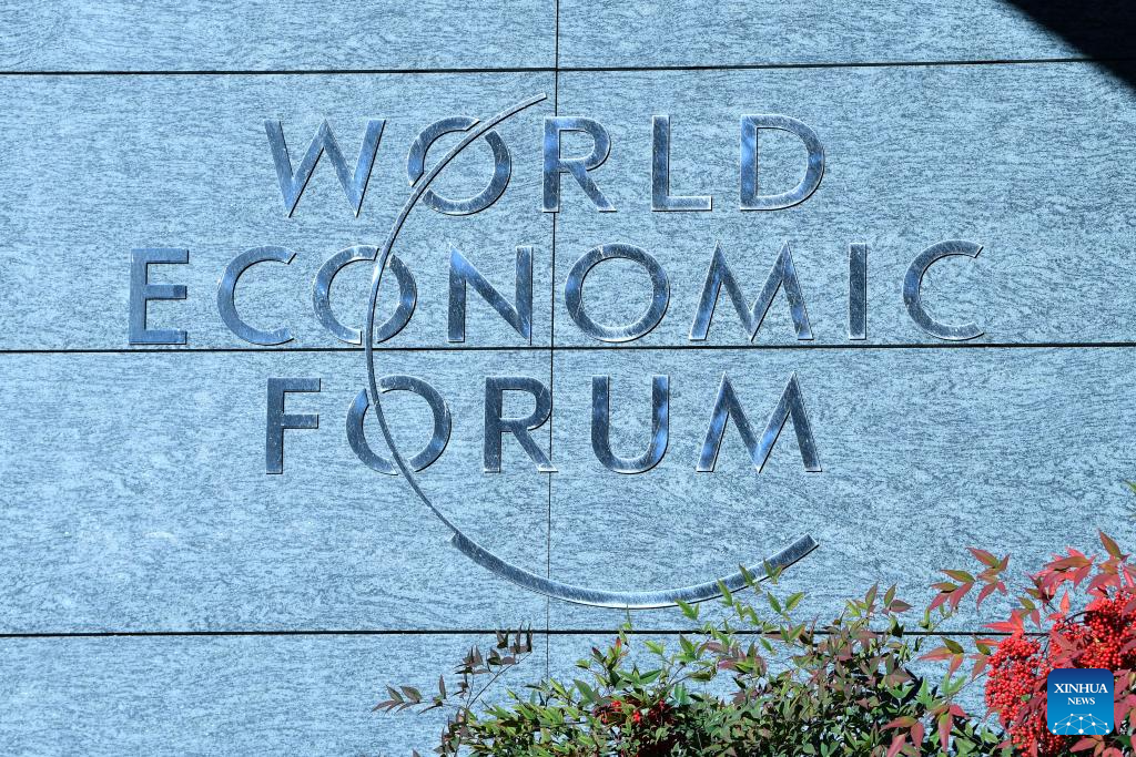 This photo taken on Jan. 18, 2026 shows the logo of the World Economic Forum in Davos, Switzerland. The 2026 annual meeting of the World Economic Forum (WEF) will be held in Davos from Jan. 19 to 23. (Xinhua/Lian Yi)