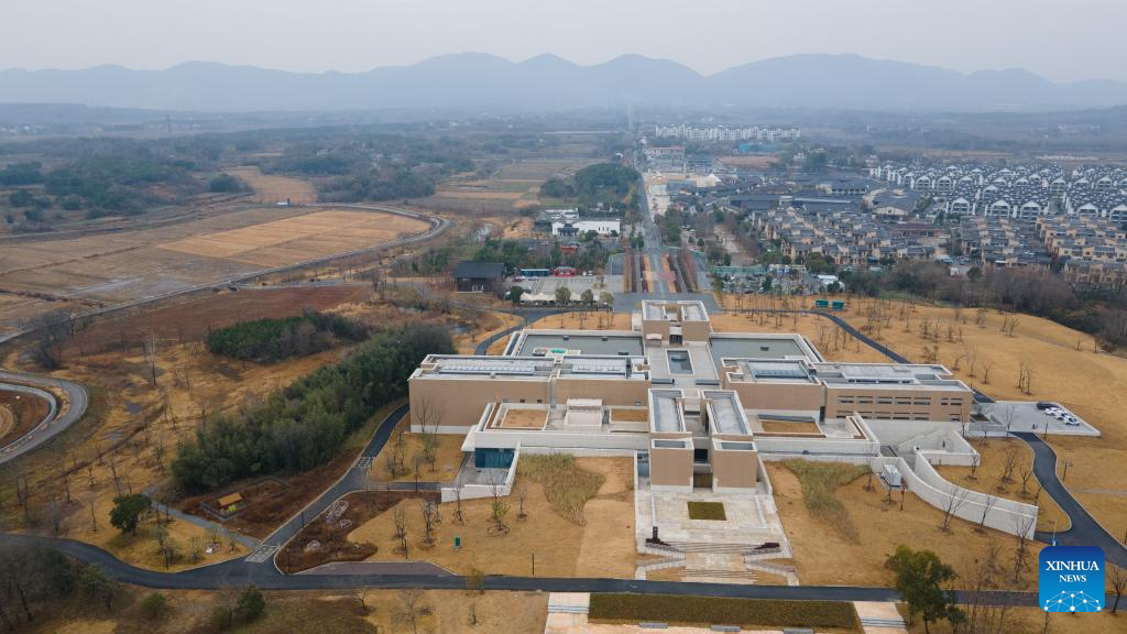 An aerial drone photo taken on Dec. 21, 2025 shows the Lingjiatan Site Museum in Hanshan County, Ma'anshan, east China's Anhui Province. Dating back some 5,300 to 5,800 years, the Lingjiatan relic site in east China's Anhui was discovered in 1985. It is known for the jadeware unearthed there. The findings include jade artifacts in various shapes, offering a peek into the spirits and aesthetics of a prehistoric Chinese jade culture. (Xinhua/Zhang Duan)