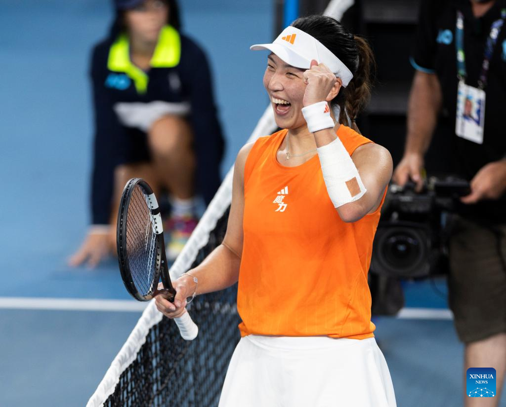 MELBOURNE, Jan. 24 (Xinhua) -- China's Wang Xinyu upset 13th seed Linda Noskova on Saturday in a match disrupted by severe heat in Melbourne as she powered into the Australian Open's last 16 for the first time in her career.
