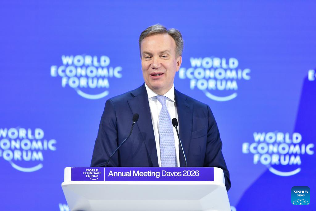 Borge Brende, president of the World Economic Forum (WEF), delivers closing remarks at the WEF Annual Meeting 2026 in Davos, Switzerland, Jan. 23, 2026. The WEF concluded its 2026 annual meeting here on Friday. (Xinhua/Lian Yi)