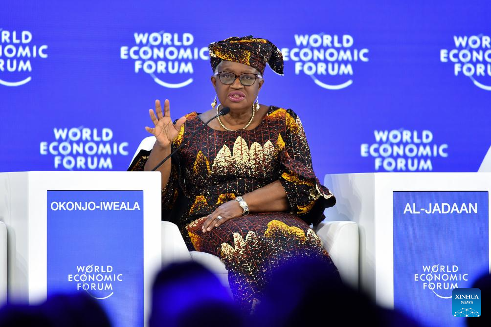 World Trade Organization (WTO) Director-General Ngozi Okonjo-Iweala speaks at the World Economic Forum (WEF) Annual Meeting 2026 in Davos, Switzerland, Jan. 23, 2026. The WEF concluded its 2026 annual meeting here on Friday. (Xinhua/Lian Yi)