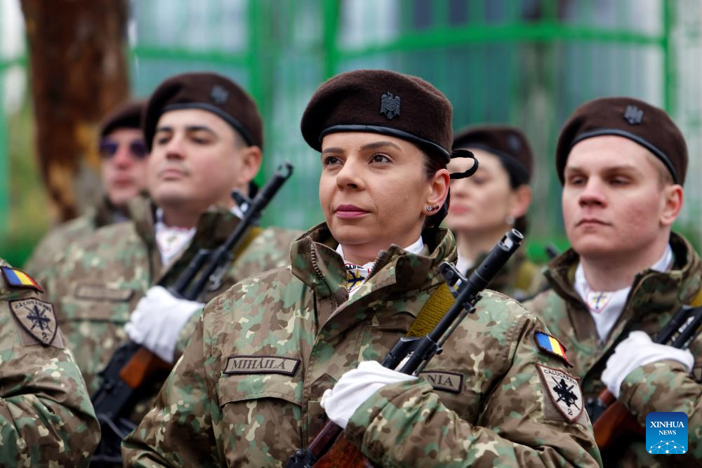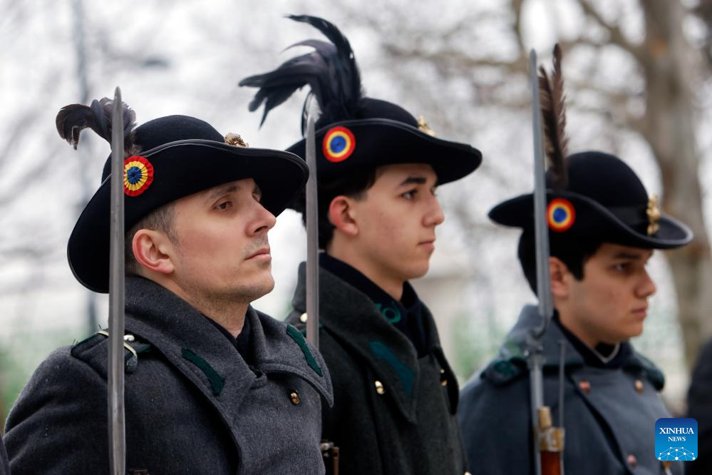 Romanian soldiers attend a ceremony marking the Day of the Union of the Romanian Principalities in Bucharest, Romania, on Jan. 24, 2026. (Photo by Cristian Cristel/Xinhua)