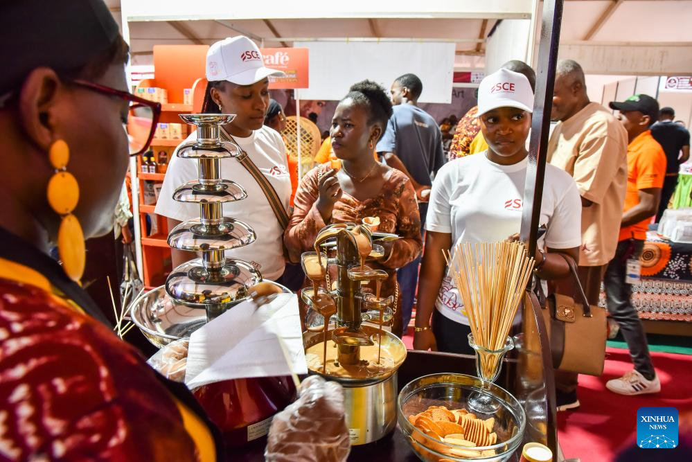 Exhibitors present cocoa and coffee products to visitors during the Cacao and Coffee Festival 2026 in Yaounde, Cameroon, March 27, 2026. Themed "the Woman at the Heart of the Sectors," the festival, held from March 26 to 28, highlighted women's strategic roles in cocoa and coffee industries. (Photo by Kepseu/Xinhua)