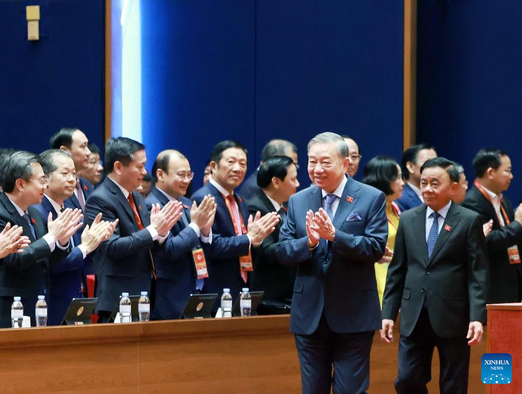 General Secretary of the Communist Party of Vietnam (CPV) Central Committee To Lam attends the 14th National Congress of the CPV in Hanoi, Vietnam on Jan. 21, 2026. To Lam has been re-elected general secretary of the Communist Party of Vietnam Central Committee, an official press release said on Friday. (VNA via Xinhua)