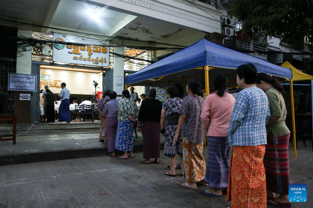 Voters queue to cast their votes at a polling station in Yangon, Myanmar, Jan. 25, 2026. The final phase of Myanmar's multi-party democratic general election began on Sunday morning, with polling stations opening in about 60 townships. (Xinhua/Myo Kyaw Soe)