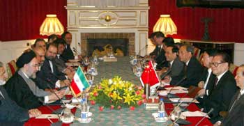 Chinese President Jiang Zemin Talks with Rafsanjani