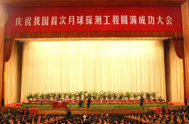 Beijing held a grand ceremony at the Great Hall of the People Wednesday morning to celebrate the success of the first stage of China's lunar probe program. President Hu Jintao delivered a speech at the assembly. Wu Bangguo, chairman of the Standing Committee of the National People's Congress, the top legislature, presided over the meeting.