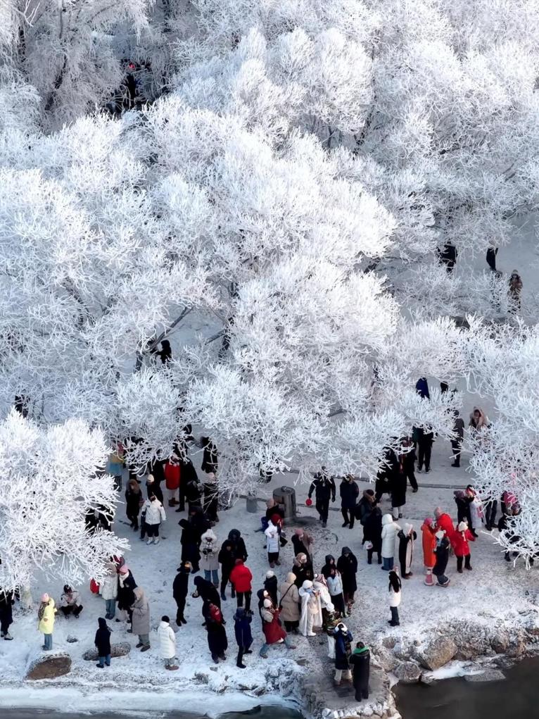 Rime ice scenery attracts crowds to Songhua River in NE China