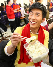 周冬雨竇驍春晚后臺吃餃子
