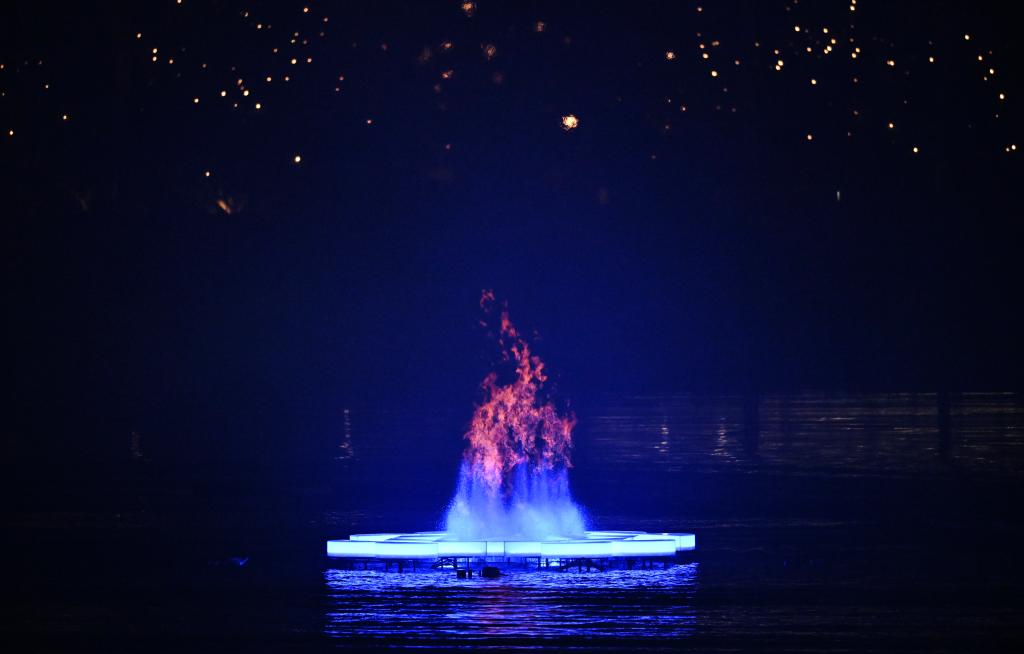 开幕式步入尾声。红与蓝交织的主火炬在秦皇湖心熊熊燃烧。水与火奇迹般的相遇令人遐想:在极限处突破,在互鉴中交融。这世界纵有冲突如水火,但包容与智慧,总能引领人类找到和平与发展的路径。