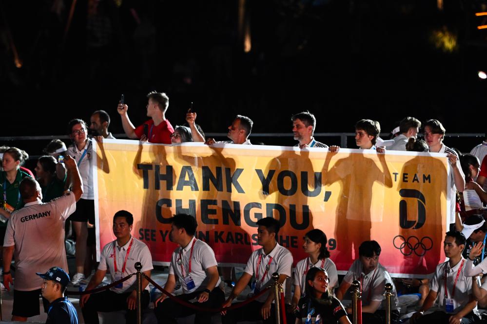 “和我在成都的街头走一走,直到所有的灯都熄灭了也不停留……”歌声中,人们共同挥手致意。绚烂的烟花腾空而起,成都,为世界体育史册留下浓墨重彩的一笔。