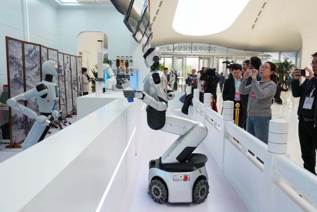 3月25日,在中关村国际创新中心,嘉宾在参观机器人餐吧。