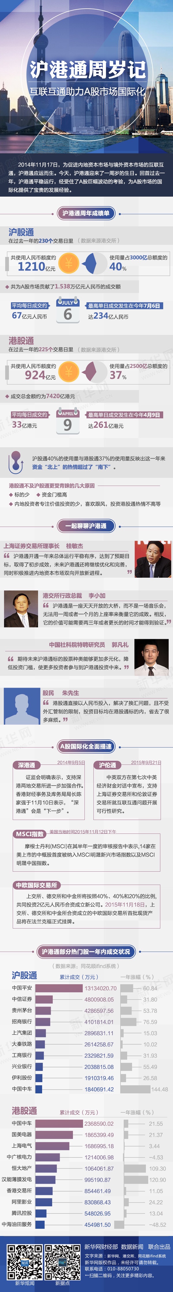 ????過(guò)去的一年,滬港通取得了從無(wú)到有的突破,內(nèi)地股市首次向全球資金直接開放,而內(nèi)地的投資者也開始全球配置資產(chǎn)。正如港交所行政總裁李小加所述,“滬港通在過(guò)去一年中運(yùn)作平穩(wěn)、交易結(jié)算機(jī)制不斷完善?!?/p>