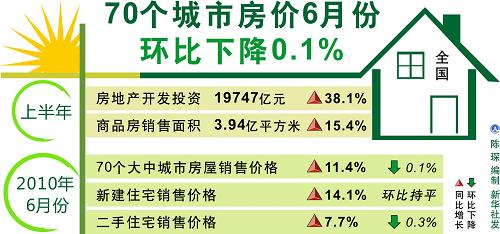 70個城市房價6月份環(huán)比下降0.1%