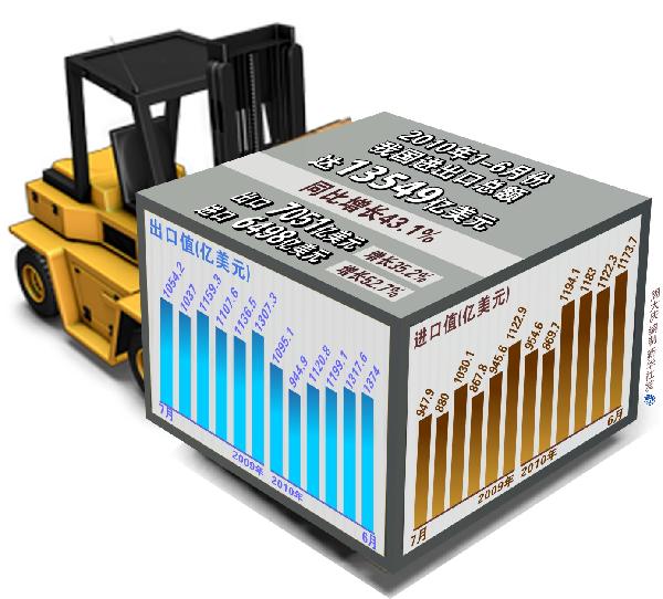 圖表:2010年1-6月份我國進出口總額達13549億美元