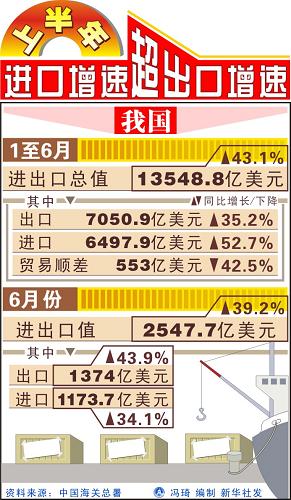 上半年進口增速超出口增速