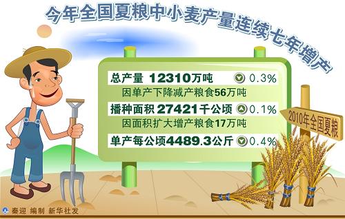 今年全國夏糧中小麥產量連續(xù)七年增產