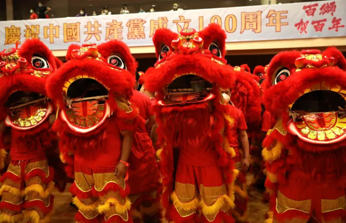 ▲ 6月20日,以“賀建黨百年、慶香港回歸”為主題的“百獅賀百年”舞獅活動在新界鄉(xiāng)議局禮堂舉行啟動儀式 吳曉初攝/本刊