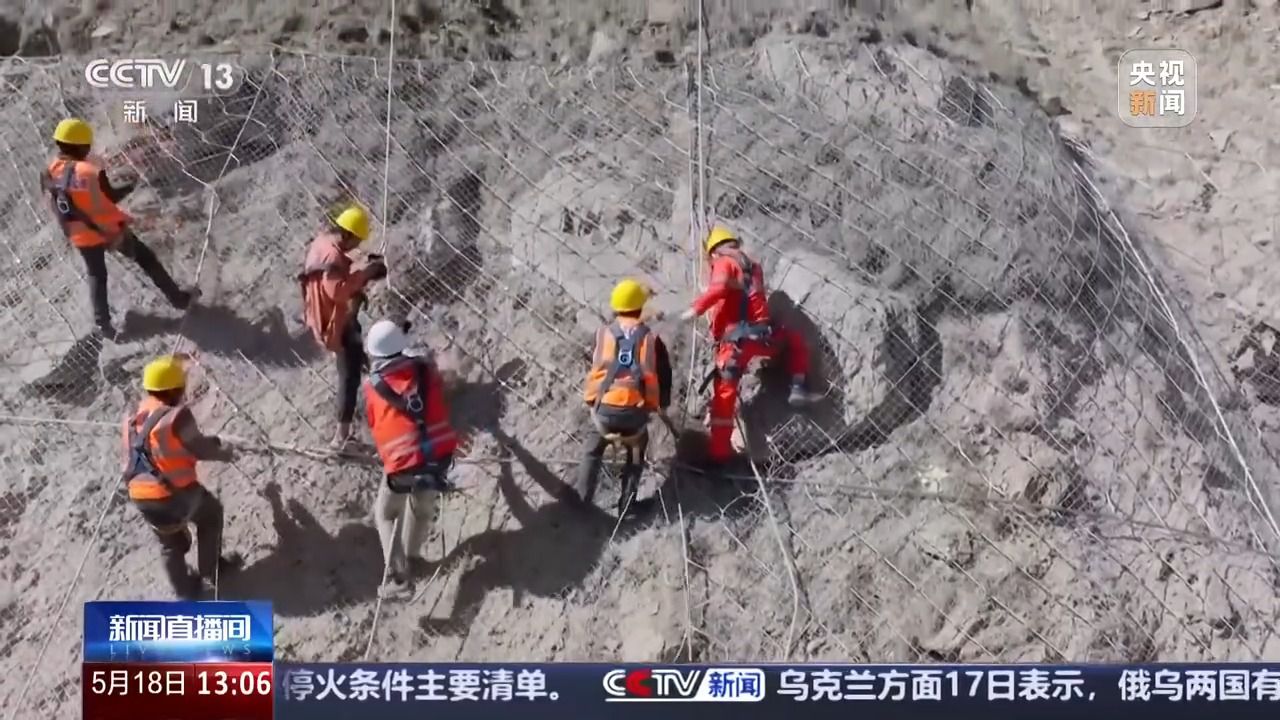 正在给山崖挂网的就是亚克甫·克然木,他一早就来到了独库公路南段的这处防护网加固作业现场,忙着给这面接近垂直的山崖挂网。虽然已经年过五十,但是他吊在空中的时候十分灵活,动作也很熟练。