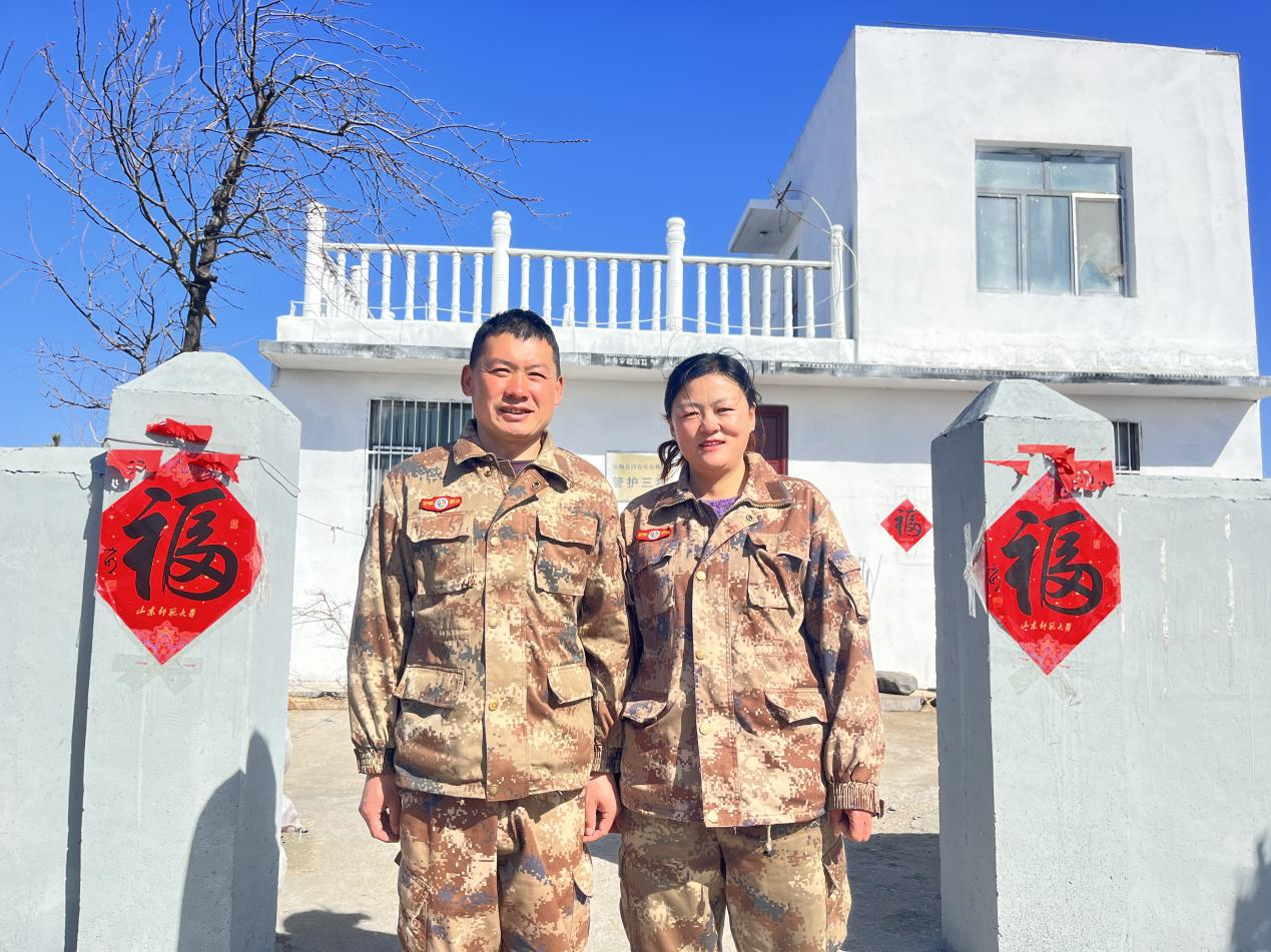 2月20日,护林员蔡长春和妻子张庆丽在哨所的“家”门前合影。新华网 吕爱玲摄