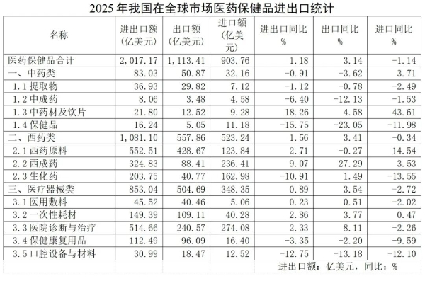 出口強(qiáng)勁、結(jié)構(gòu)升級(jí):2025年中國(guó)醫(yī)藥保健品貿(mào)易展現(xiàn)高質(zhì)量發(fā)展韌性