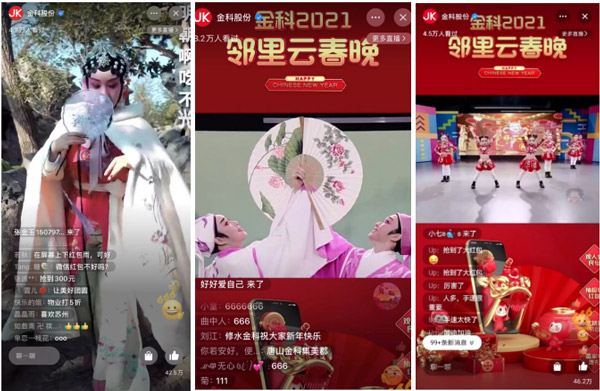 金科積極響應(yīng)政府號召,也深度洞察人們對團(tuán)圓的期盼,2月5日,集團(tuán)品牌統(tǒng)籌舉辦了“金科2021鄰里云春晚”。通過一場鄰里春晚直播,打破了疫情防控常態(tài)化下的空間壁壘,讓全國百萬業(yè)主實(shí)現(xiàn)線上團(tuán)圓。