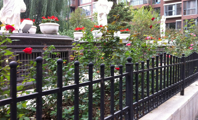 在富力城的大社區(qū)之中,每個(gè)小區(qū)域都配有保安人員,也都是封閉式設(shè)計(jì),業(yè)主需要刷卡進(jìn)入。不過小區(qū)的外部護(hù)欄之低也是其他樓盤“不可比擬”的。這種護(hù)欄基本上起不到安保的作用,并且院中場(chǎng)景一覽無余。