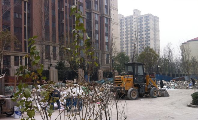 記者實地調(diào)查發(fā)現(xiàn),富力盛悅居項目北面有一個垃圾堆,主要是裝修之后的廢棄物和日常生活垃圾。因此離垃圾堆居住較近的居民比較擔(dān)憂夏季的到來,那時恐怕氣味會比較大。小區(qū)所有大門均設(shè)有門禁,但并未啟用,門口雖有保安,但并沒有阻止記者進(jìn)入小區(qū)。小區(qū)內(nèi)部環(huán)境與外面形成了強(qiáng)烈的對比,樹木茂盛,即使是冬季也顯得郁郁蔥蔥。有給兒童嬉戲的娛樂設(shè)施,有給成人設(shè)置的休閑場所,記者進(jìn)入時物業(yè)工作人員正在給樹木修剪枝葉和澆水。雖然小區(qū)實施了人車分流,但很多業(yè)主的車并未停進(jìn)地下停車場,而是隨意停在了小區(qū)外的道路兩端,將原本寬敞的四車道變成了如今狹窄的兩個車道。