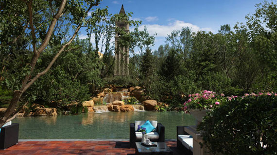 林語墅景觀是另外一大特色,花叢、溪畔、用黃蠟石堆積的假山既有西方皇家的規(guī)制,又體現(xiàn)東方禪境園林的意蘊(yùn)。記者在現(xiàn)場看到項(xiàng)目內(nèi)還配有3000平的高爾夫推桿練習(xí)場。置身其外,卻也能體會(huì)居者頂級品味。
