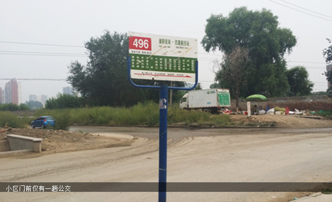 但經(jīng)過(guò)記者實(shí)地探訪,小區(qū)門(mén)前僅有一趟公交496路,需要等待時(shí)間20分鐘。并且小區(qū)外揚(yáng)塵很大,塵土飛揚(yáng)。