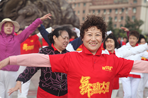 阿姨們手揮小國(guó)旗獻(xiàn)禮國(guó)慶節(jié) |