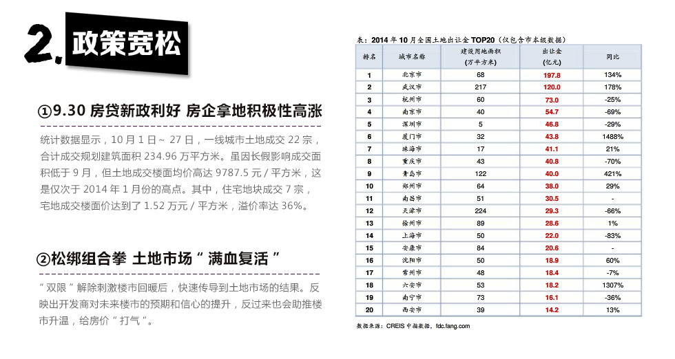 近期土地市場(chǎng)呈現(xiàn)小幅升溫態(tài)勢(shì),在量?jī)r(jià)上都有明顯的體現(xiàn)。土地市場(chǎng)逐漸步出低迷態(tài)勢(shì),一方面和地方政府推地節(jié)奏開始加快有關(guān),另一方面和部分房企去庫(kù)存效應(yīng)顯現(xiàn)后的拿地策略轉(zhuǎn)變有關(guān)...