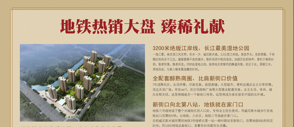 2014年南京迎來第二屆夏季青年奧林匹克運動會,與此同時過江地鐵3號線和10號線也將在2014年建成通車,雙城擁江已成格局,威尼斯水城450萬方地鐵濱江花園新城華東第一大盤。 …[詳細]