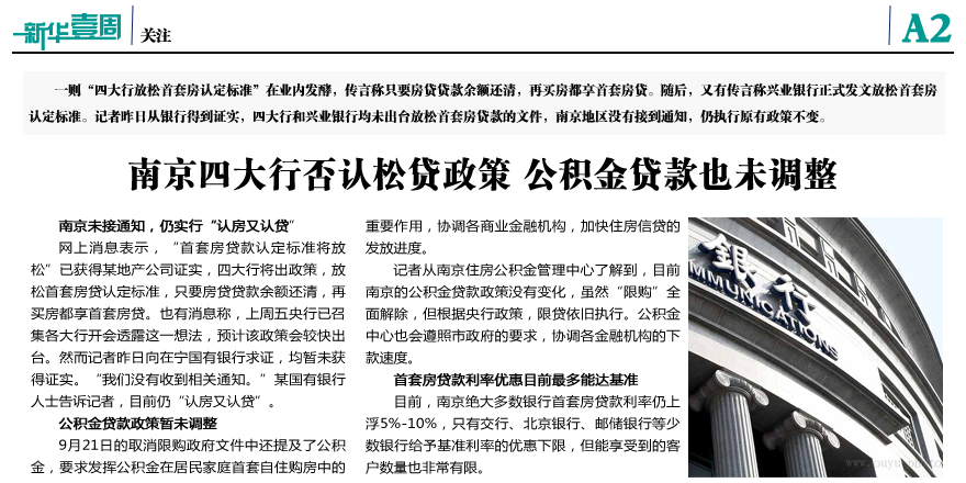 南京四大行否認(rèn)松貸政策