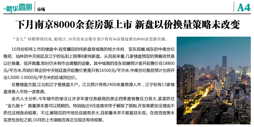 下月南京8000余套房源上市