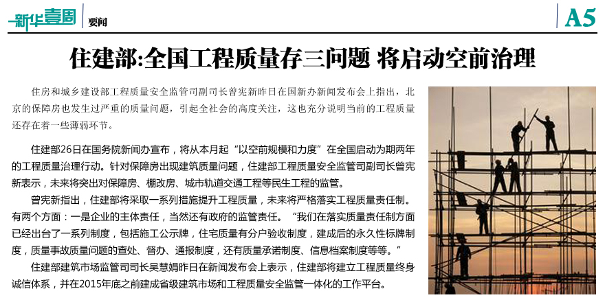 住建部:全國工程質(zhì)量存三問題
