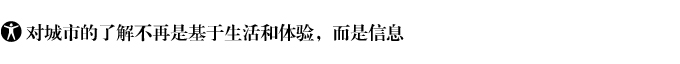 ![]() 城市越冒險(xiǎn),生活其中的人們對(duì)城市就會(huì)越陌生??梢?jiàn)的事實(shí)是,人們對(duì)城市的了解不再是基于生活和體驗(yàn),而是信息。此前延續(xù)多年的城市生活規(guī)律和節(jié)奏被互聯(lián)網(wǎng)打破了,互聯(lián)網(wǎng)把城市的每一部分都終端化,城市的每一個(gè)具有生命特征的組織不再受生理和情理的連接,而是信息的連接。一方面,信息成為連接人與人、人與城市、城市與城市的單一工具,信息把城市圈成了地域以外的另一種空間,只是,信息的流動(dòng)性并沒(méi)有協(xié)助人了解城市,反倒是增加了越來(lái)越多的陌生。 另一方面,陌生又完成了城市開(kāi)放意象的表達(dá),這也是一座城市為什么能吸引外來(lái)者旅游、造訪、定居的重要原因。信息的獨(dú)立和集合讓人、讓城市的局部在封閉系統(tǒng)之外,又像互聯(lián)網(wǎng)時(shí)代的物流一樣多樣化、復(fù)合化。 |