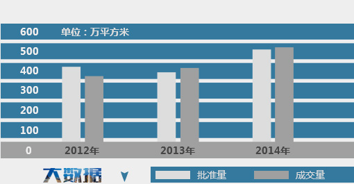 2014年,石家莊市住房保障和房產(chǎn)管理局共發(fā)放商品房預(yù)售許可證151個,涉及市區(qū)76個項目,上市面積為797萬平方米,同比增長35%。