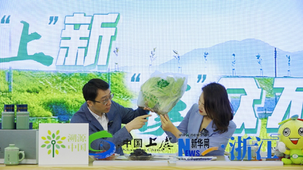 現(xiàn)場,紹興市上虞區(qū)副區(qū)長周尊隆用關鍵詞推介上虞:“最早建縣”“曹娥”“祝英臺”“產(chǎn)糧大縣”“四季仙果”“孝德文化之鄉(xiāng)”“綜合實力百強區(qū)”……一個鐘靈毓秀、朝氣蓬勃的上虞躍然話間。主持人品嘗上虞:本地大米、覺農(nóng)翠茗茶、高山櫻桃、桑葚、活體蔬菜……一個民安物阜、有滋有味的上虞展現(xiàn)舌尖。場外主播則探秘上虞:90后新農(nóng)人、科技大棚、無土栽培……一個創(chuàng)新智慧、數(shù)字興城的上虞閃爍田間。